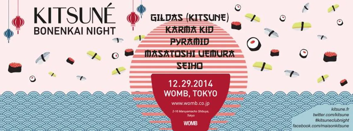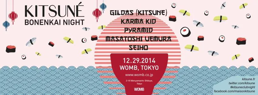 年末最後のDJはWOMBでKITSUNEのBOUNENKAIパーリーです。 VIP ROOMでDJしますので、おいでやす。