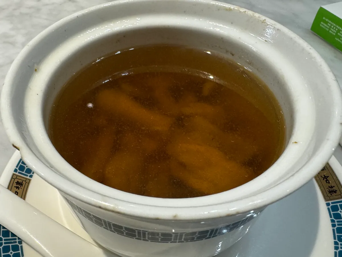 空港で飲茶とスープを注文する。
